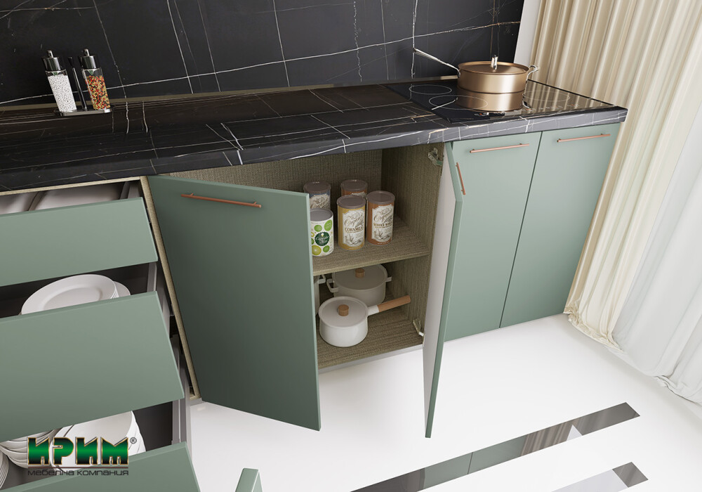 - Два долни модула с две врати и плот, възможност за вграждане на мивка МФ-Олив мат-11-23 - 80/55/87см.
