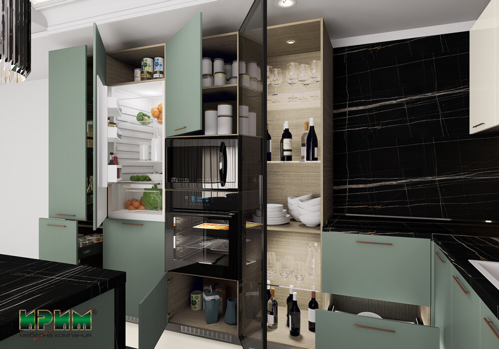 - Колонен модул с възможност за вграждане на хладилик с височина 178см МФ-Олив мат-11-50 - 60/59/223см.