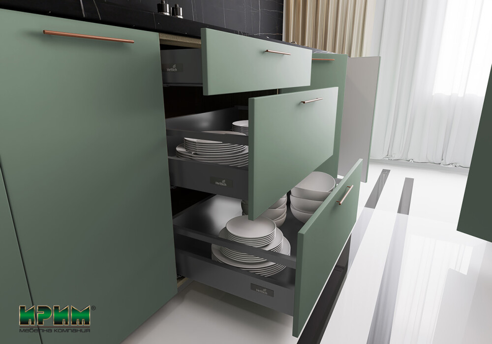 - Долен модул с три чекмеджета със система InnoTech Atira плавно пребиране МФ-Олив мат-11-55 - 80/55/87см