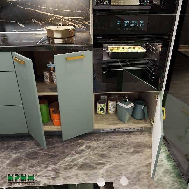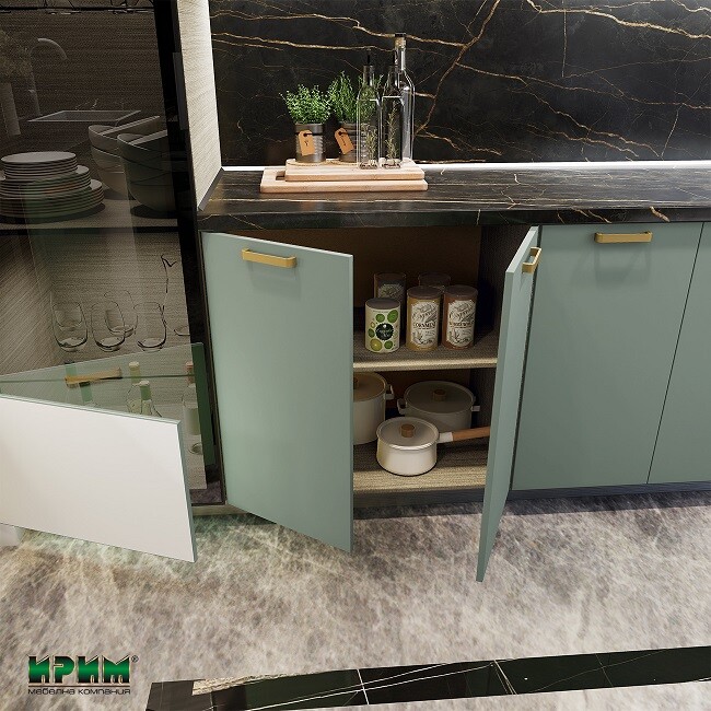 • Четири долни модула с две врати и плот, възможност за вграждане на мивка МФ-Олив мат-11-23 - 80/55/87см.