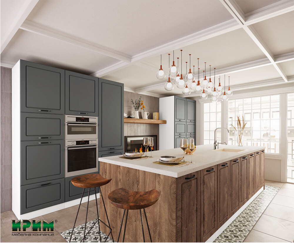Съвременната кухня Сити 968 в комбинация МДФ Цимент мат и Дъб натурал впечатлява с модерна индустриална визия и висококачествена изработка. Колонните модули предлагат оптимална функционалност с възможност за цялостно вграждане на уреди, включително хладилник, фурна и микровълнова. Просторният остров осигурява изобилие от място за съхранение и удобство при работа, благодарение на осемте долни модула с плавно затваряне. Завършена с термоплот „Алания“, кухнята съчетава стил, практичност и дълготрайност в едно модерно решение.
