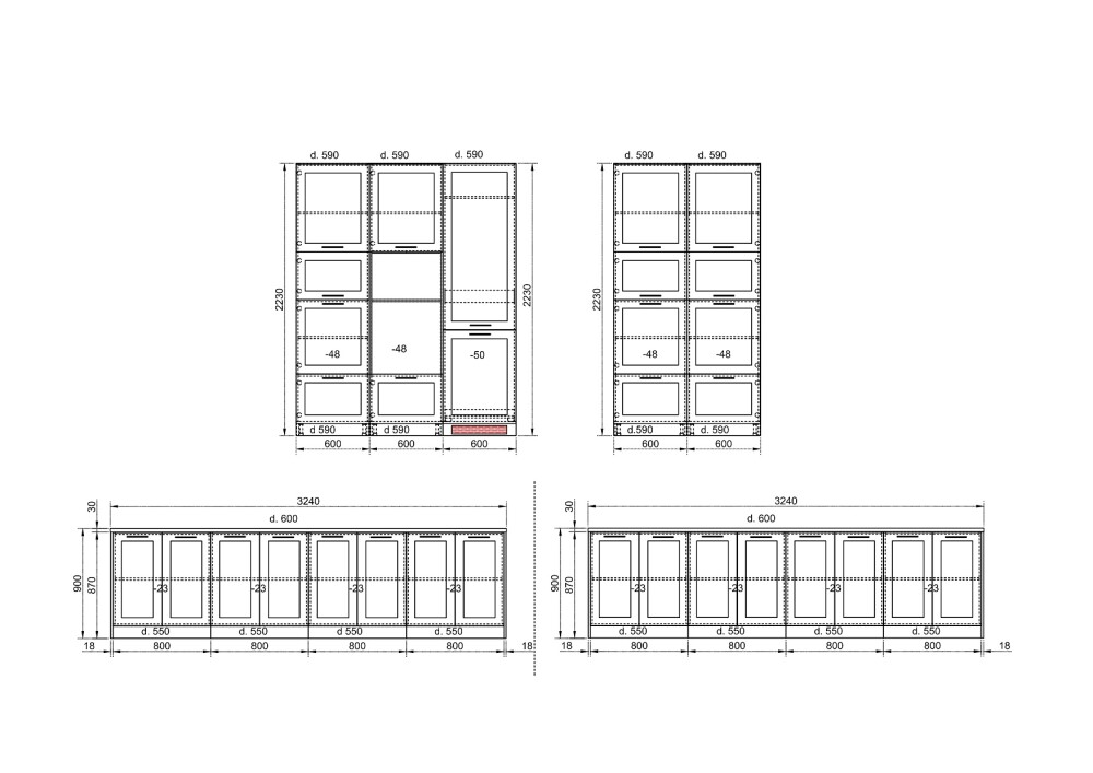 (дълбочина на шкафовете под плота – 55 см)