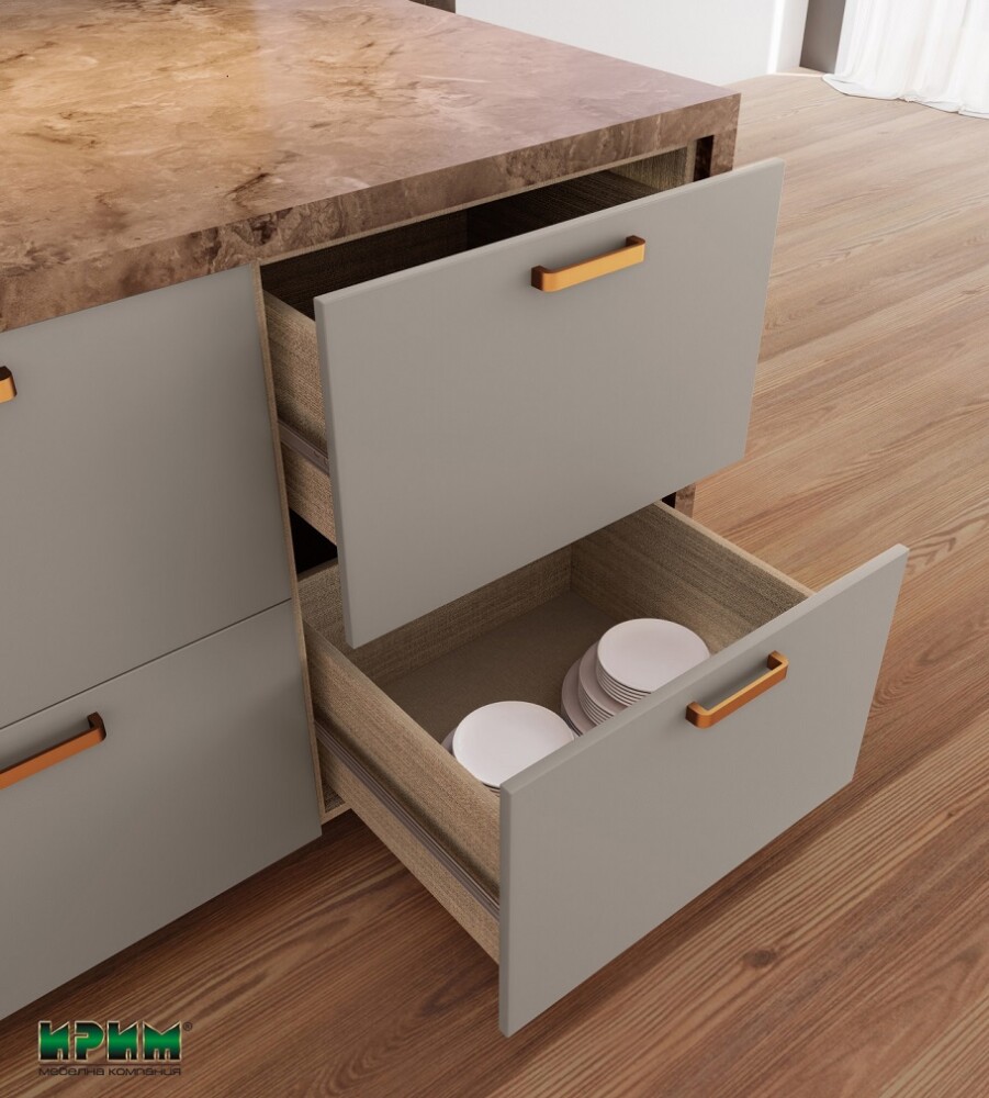 - Шкаф с три чекмеджета със система Hettich InnoTech Atira плавно пребиране МФ-Капучино мат-11-55 - 80/55/87 см