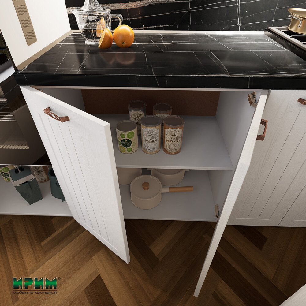 - Два долни модула с две врати и плот, възможност за вграждане на мивка БФ-Бяло фладер-04-22 - 60/55/87см.