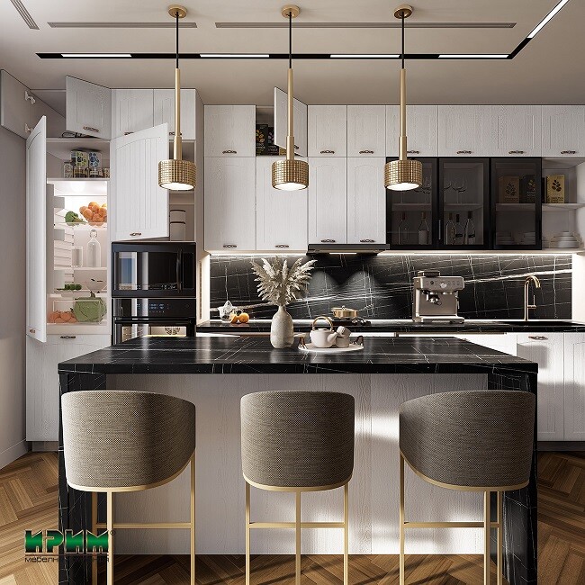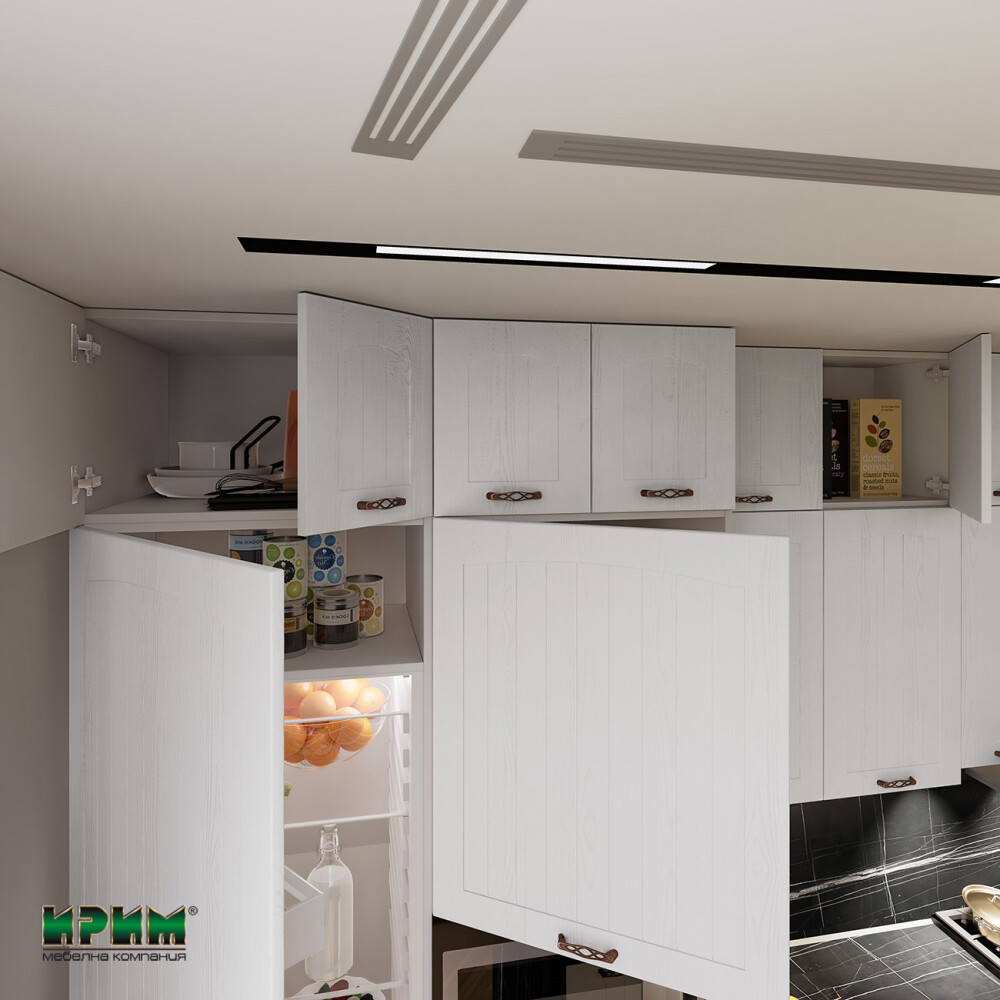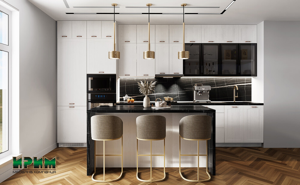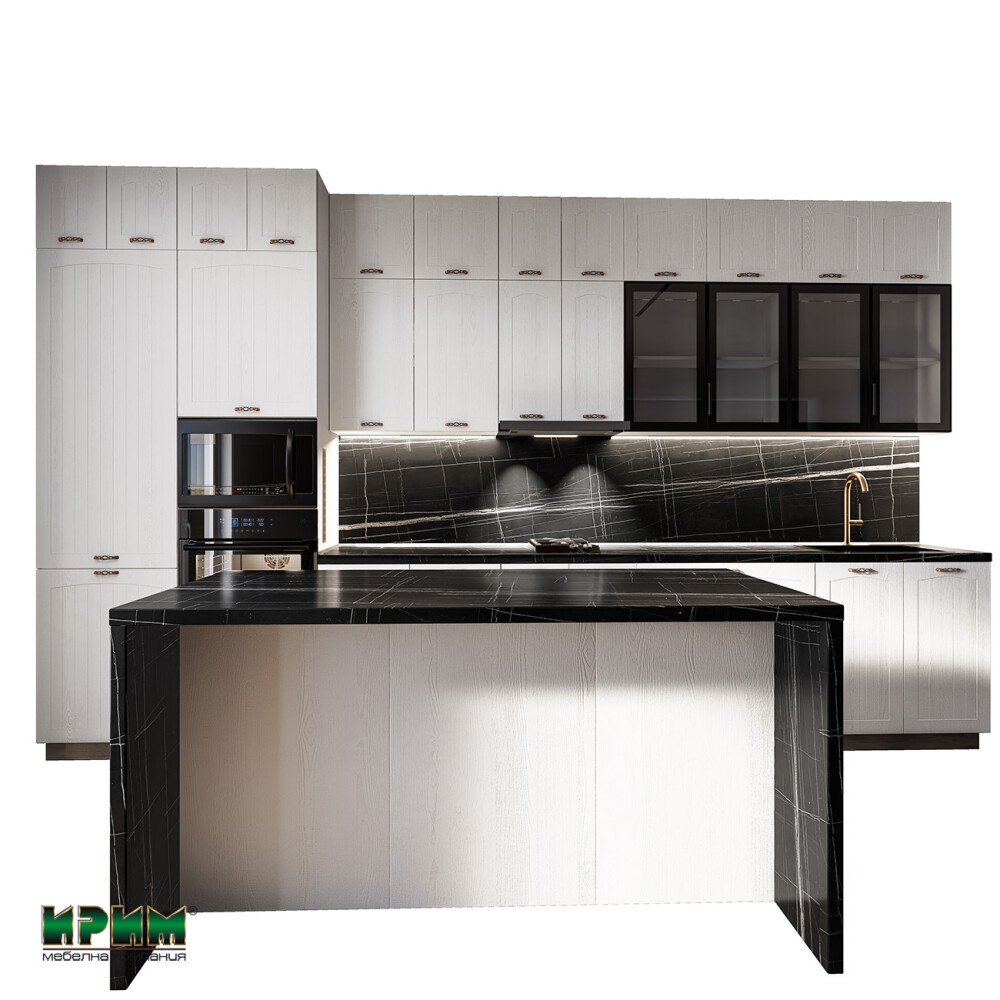 Кухнята Сити 9162 впечатлява с модерен, свеж и изчистен дизайн в елегантна светла цветова комбинация. Богатата конфигурация включва колонни модули за вграждане на уреди, просторни долни шкафове и функционален остров, осигуряващ допълнително работно пространство. Плавното затваряне на вратите и висококачествените материали гарантират дълготрайност, комфорт и удобство при ежедневна употреба. Кухнята предлага оптимално разпределение на модулите и стилно LED решение, което създава уютна атмосфера в съвременния дом.