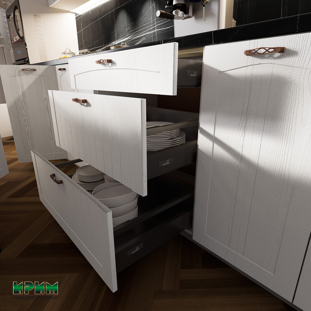 - Долен модул с три чекмеджета и система InnoTech Atira с плавно затварне БФ-Бяло фладер-04-55 -80/55/87см,