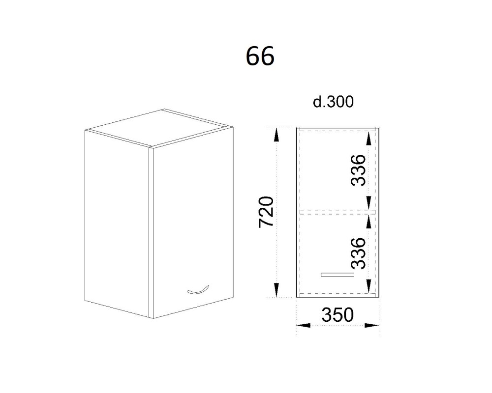 Горен модул с врата и рафт МФ-Бяло фладер-04-66 (ляв)