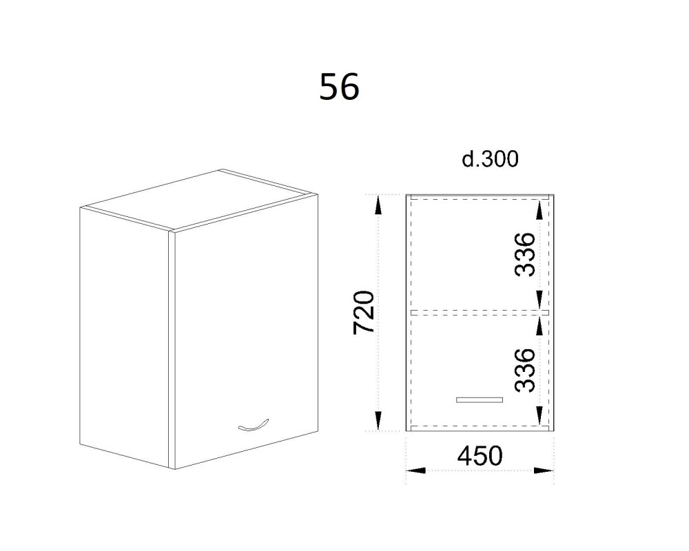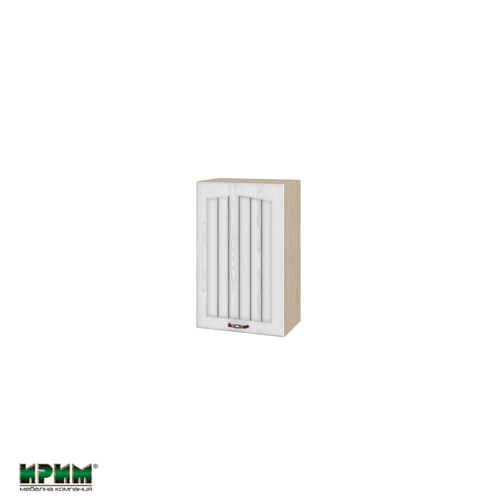 Горен модул с врата и рафт МФ-Бяло фладер-04-56 (ляв)