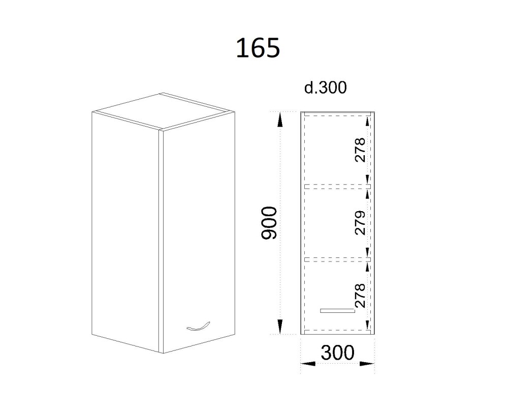 Горен модул с врата и два рафта МФ-Бяло фладер-04-165 (ляв)