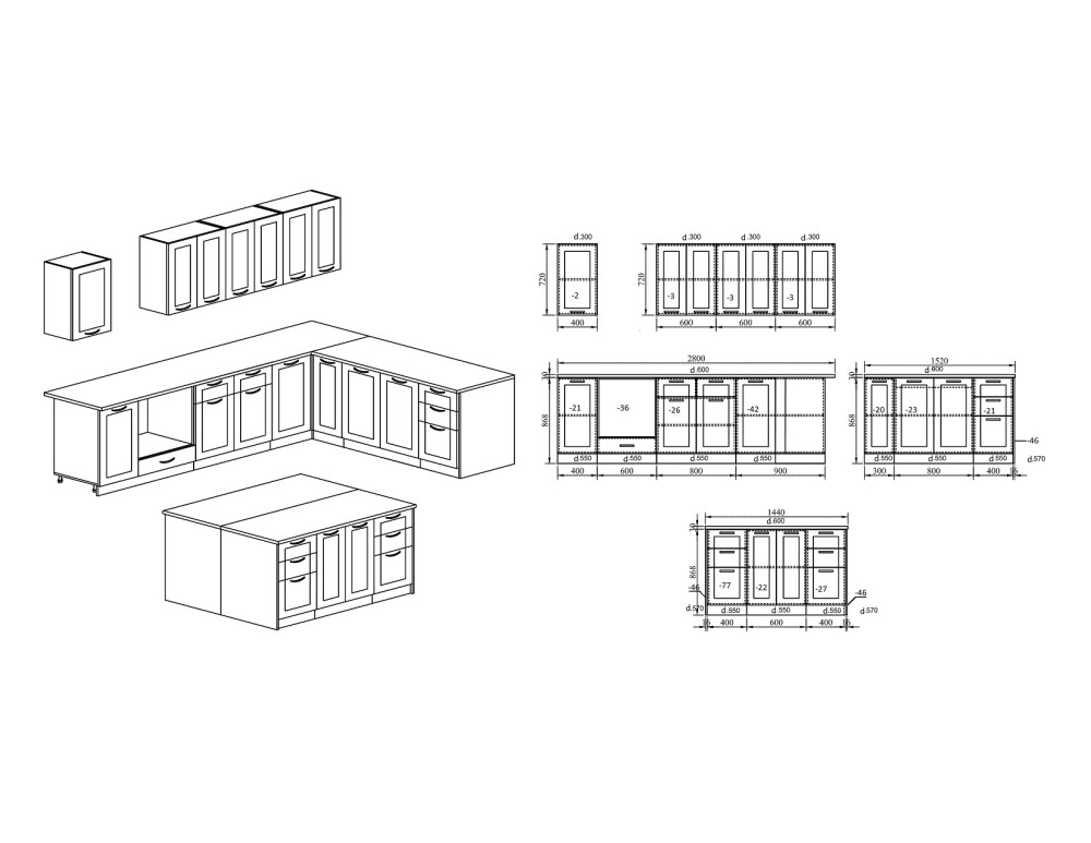 • Два долни модула с две чекмеджета и врата с ляво отваряне МФ-Сонома-02-77 - 40/55/87см.