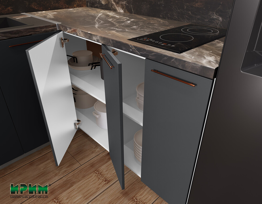 • Три долни модула с две врати и връзможност за вграждане на мивка БФ-Карбон мат-11-23 - 80/55/87см.