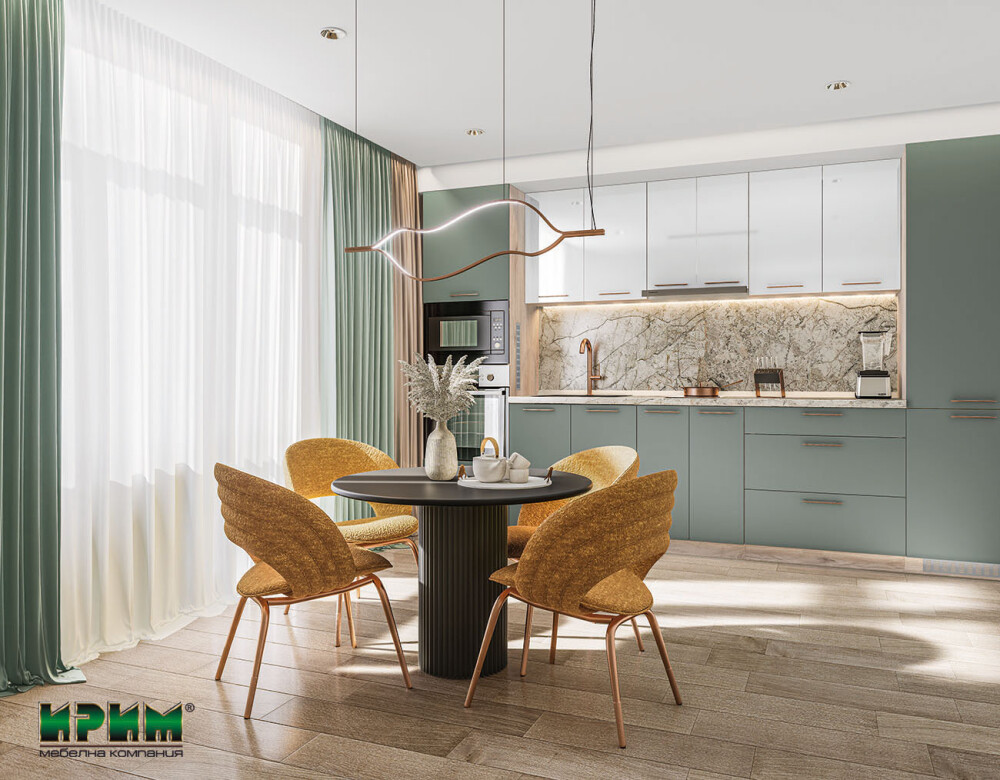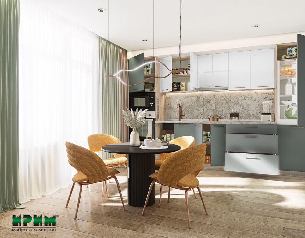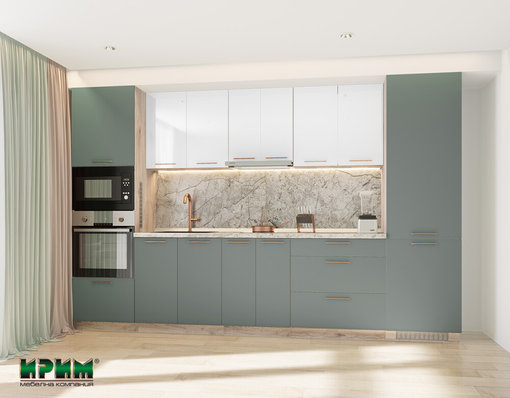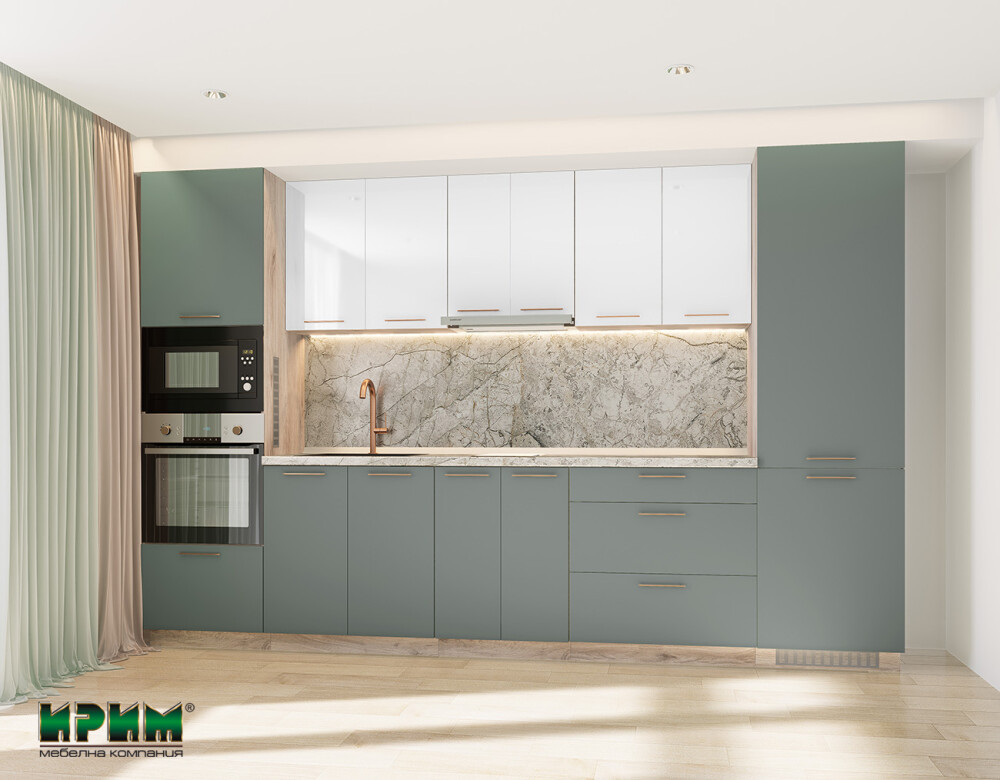 Кухнята Сити 9119 съчетава модерен стил и елегантна цветова комбинация, създавайки уютна и съвременна атмосфера в дома. Долният ред предлага напълно функционални модули – колонни шкафове за уреди, широки модули за мивка и практични чекмеджета с плавно прибиране, осигуряващи удобство и оптимално разпределение. Горният ред в бял гланц добавя визуална лекота и предоставя достатъчно място за подредба и съхранение. Изработена от висококачествен МДФ, тази кухня гарантира дълготрайност, комфорт и стилно присъствие във всяко пространство.