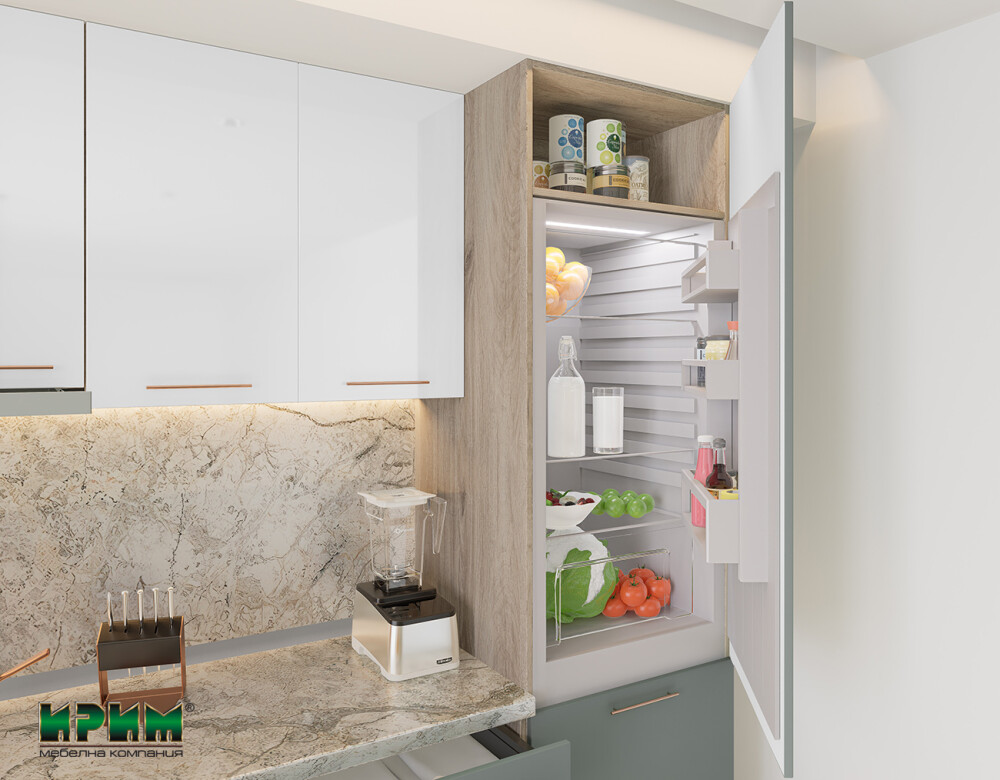 - Колонен модул с две врати с възможност за вграждане на хадилник с височина 178см АРФ-Олив мат-11-50 - 60/59/223см.