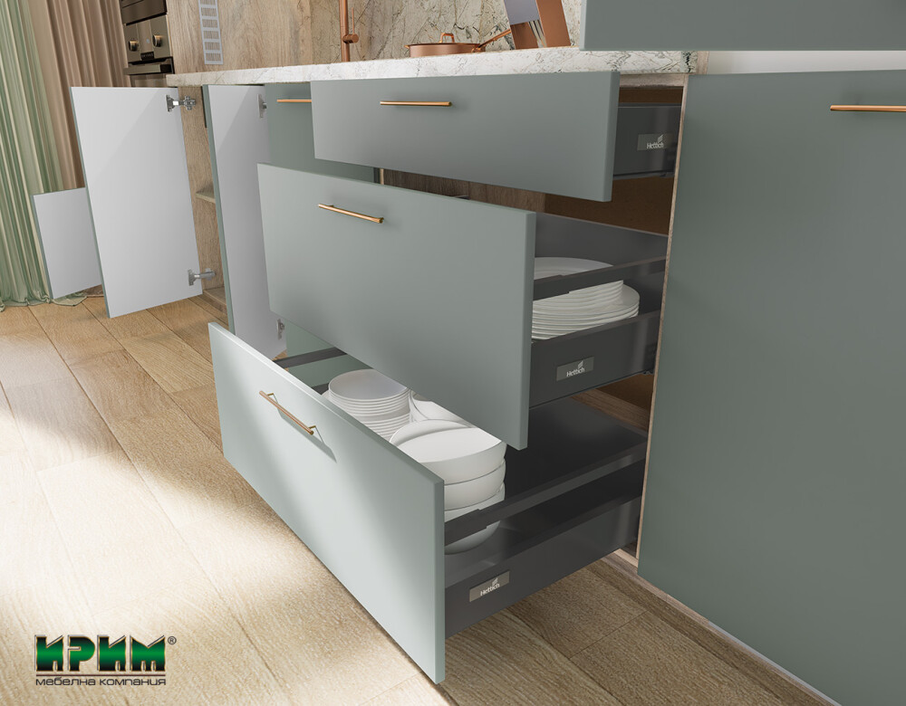 - Долен модул с три чекмеджета и система InnoTech Atira плавно пребиране АРФ-Олив мат-11-55 - 80/55/87см.
