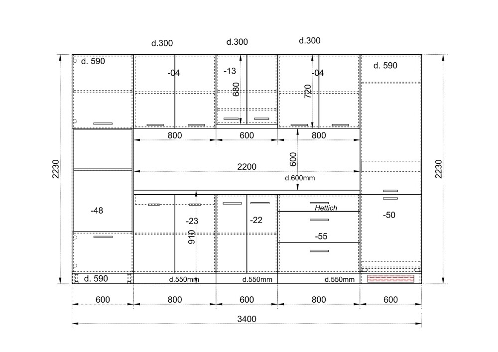 Дълбочина на шкафове под плот 55см.