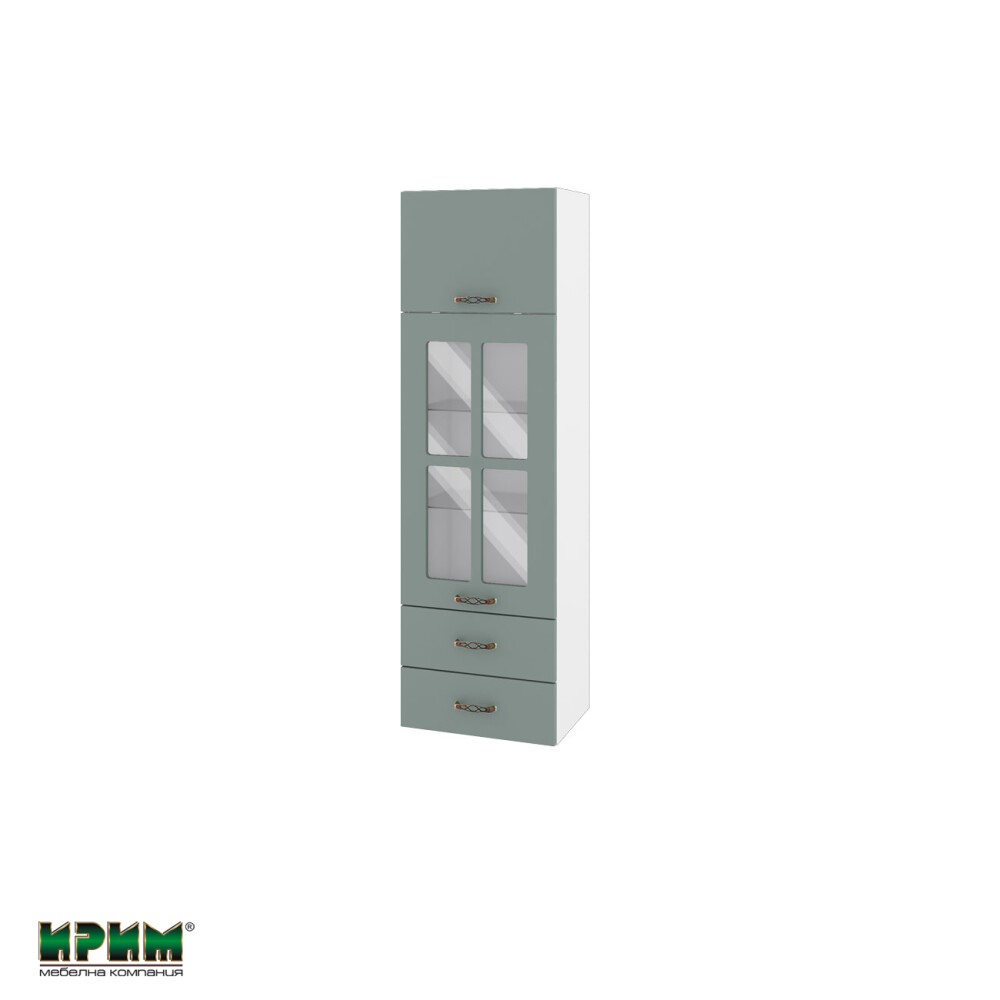 Горен модул с врата,витрина и две чекмеджета БФ-Олив мат-11-101