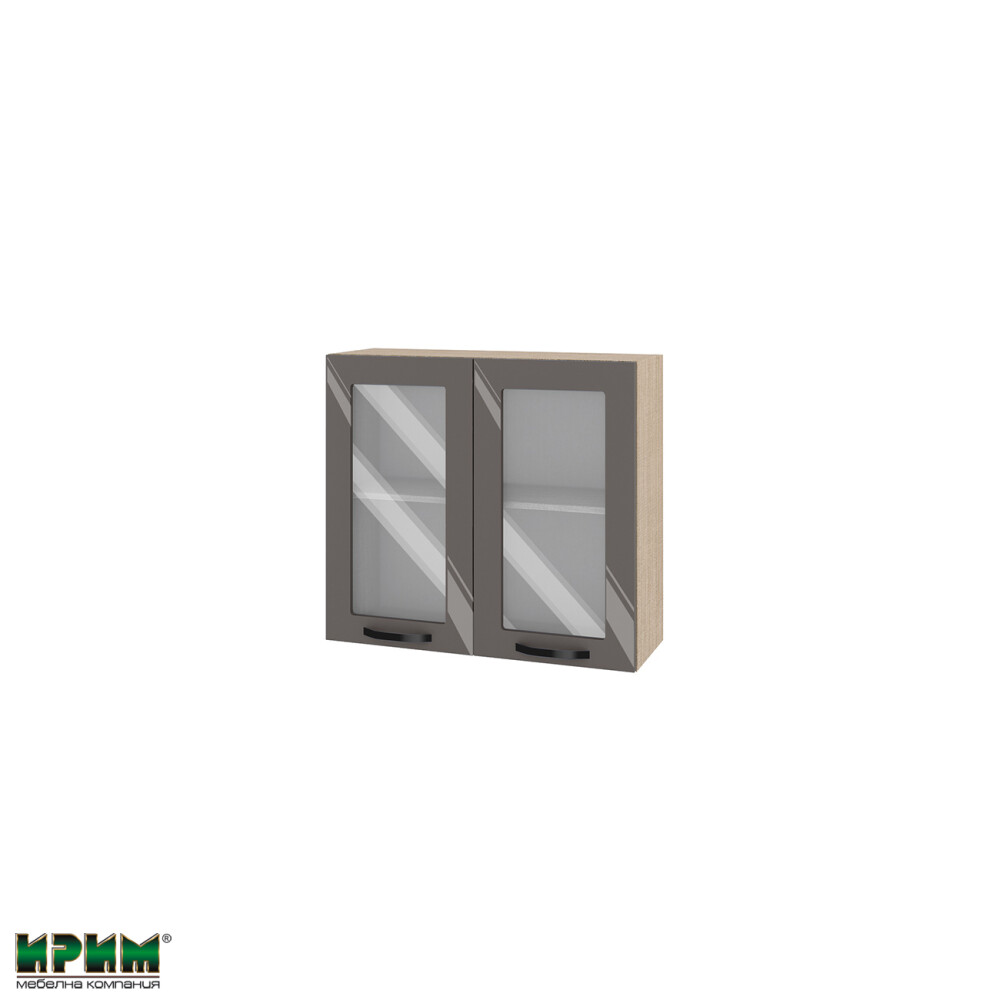 Горен модул с две витринни врати и рафт МФ-Антрацит гланц-05-204