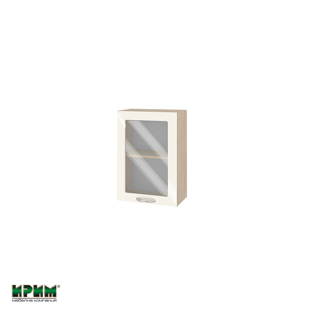 Горен модул с витринна врата и рафт МФ-Крийм гланц-11-218