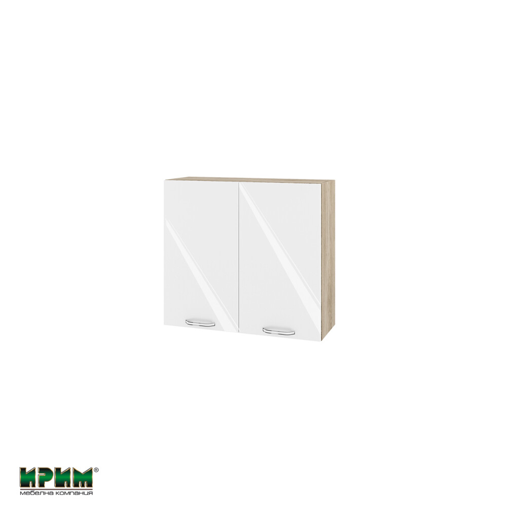 Горен модул с две врати и рафт АРФ-Бяло гланц-05-4