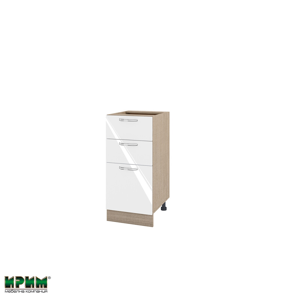 Долен модул с 2 чекмеджета,врата и рафт МФ-Бяло гланц-05-27