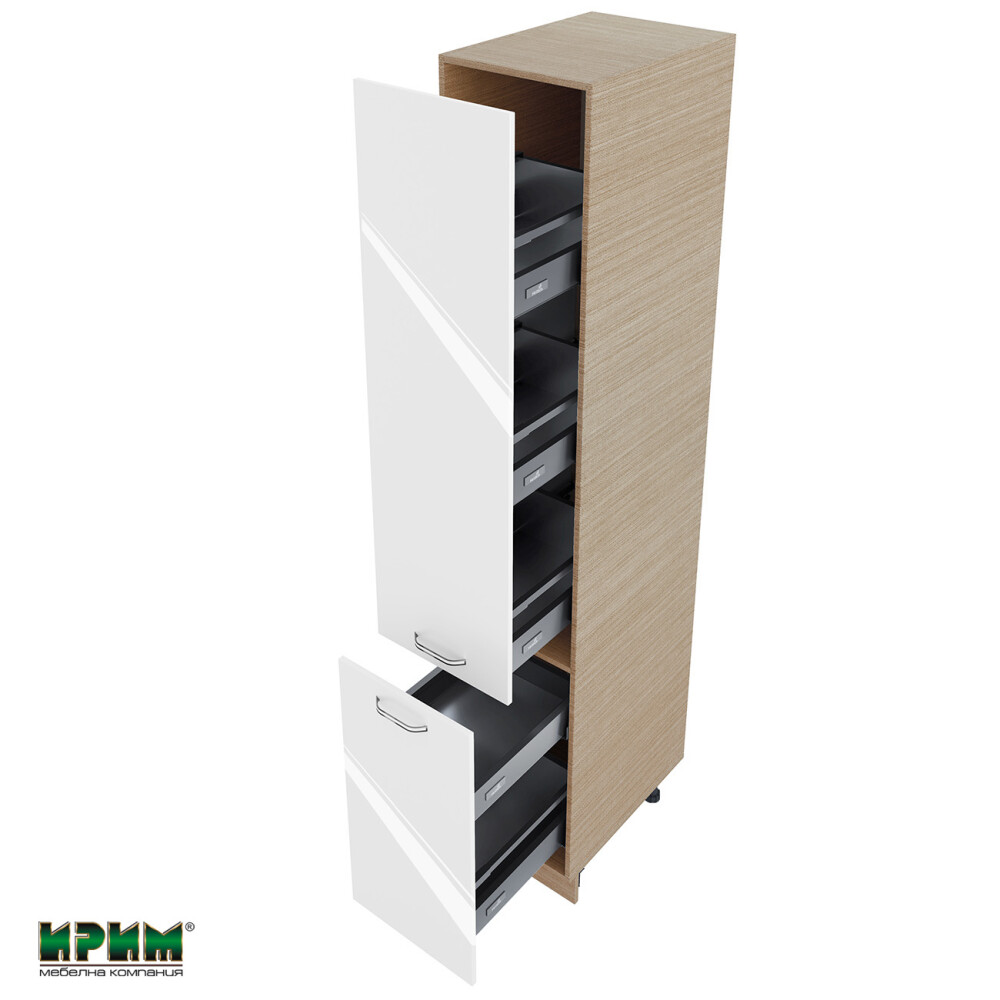 Кухненските модули МФ – Бяло гланц се отличават с модерна визия и висококачествени материали. Лицето от МДФ 18 мм в Бяло гланц създава луксозен отблясък и визуално разширява пространството. Здравият корпус от ПДЧ Мока 16 мм добавя топъл контраст и гарантира дълготрайна стабилност. Перфектен избор за кухня с премиум излъчване и безупречна функционалност.