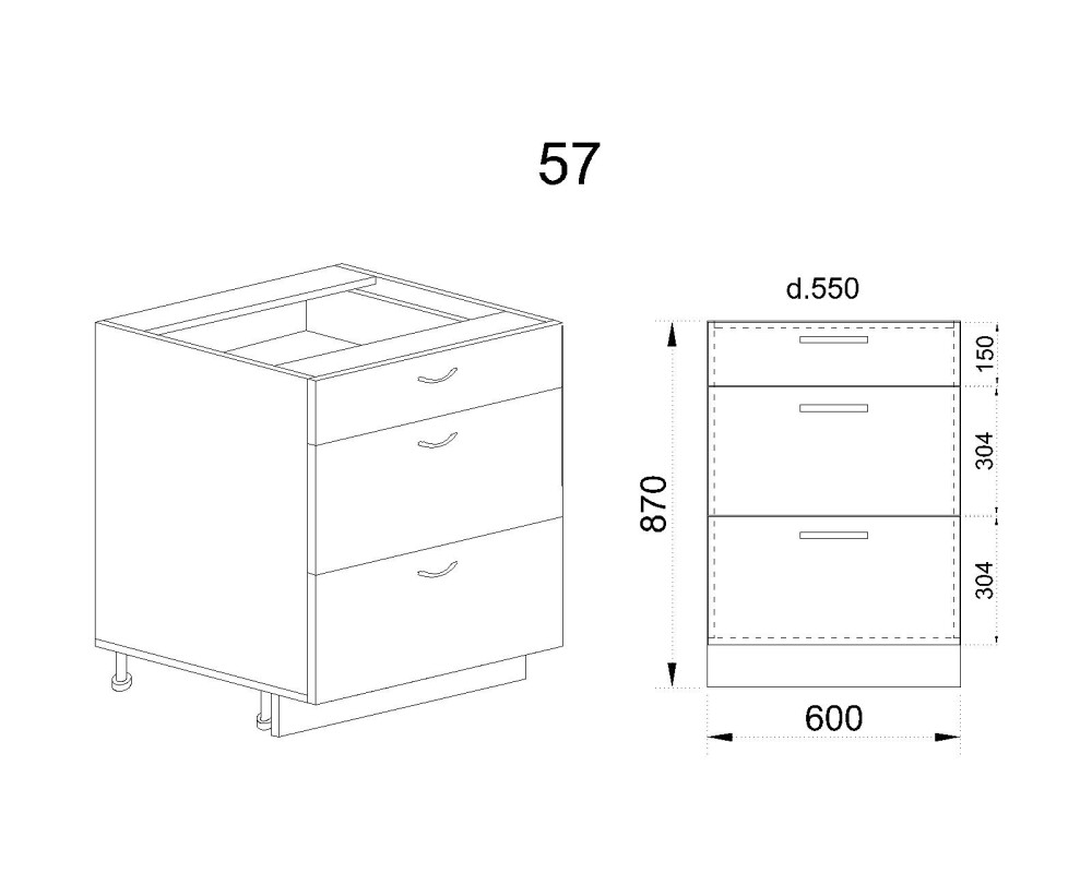 Долен модул с три чекмеджета МФ-Бяло мат-09-57