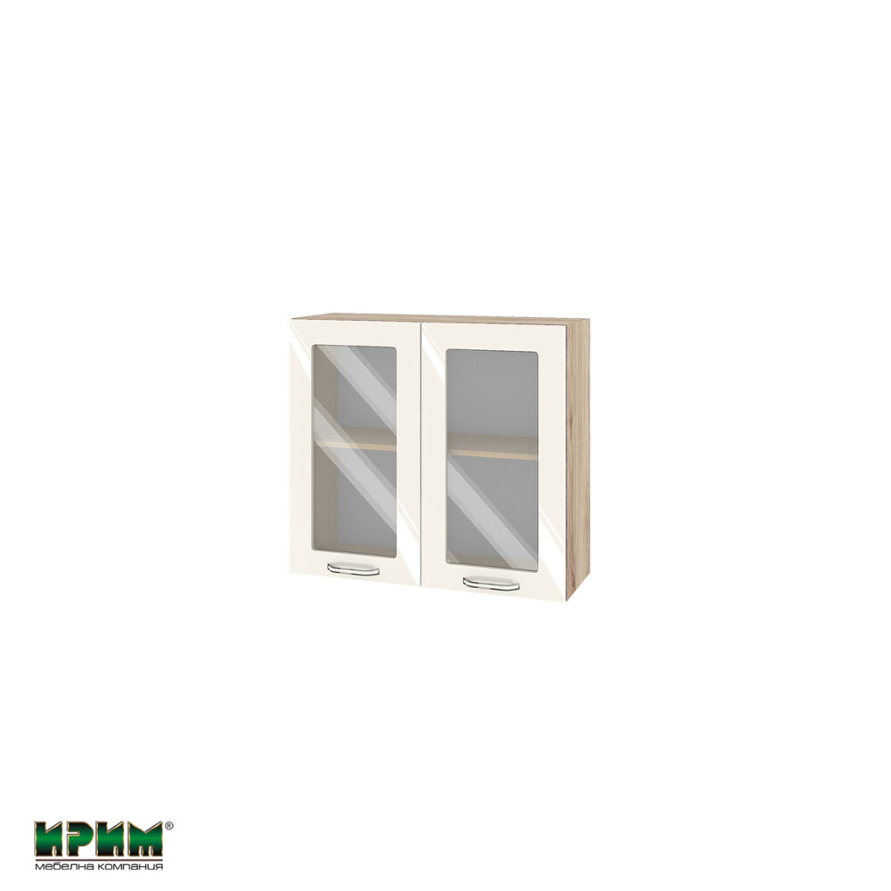 Горен модул с две витринни врати и рафт АРФ-Крийм гланц-06-204