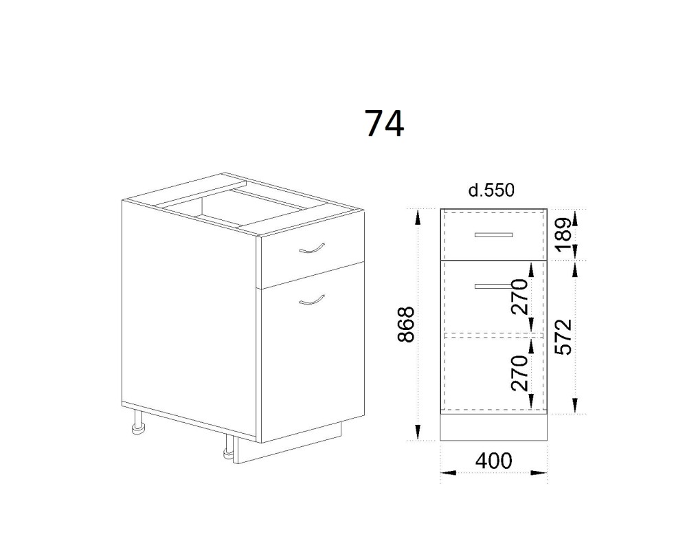 Долен модул с чекмедже,врата и рафт АРФ-Цимент мат-06-74 (ляв)