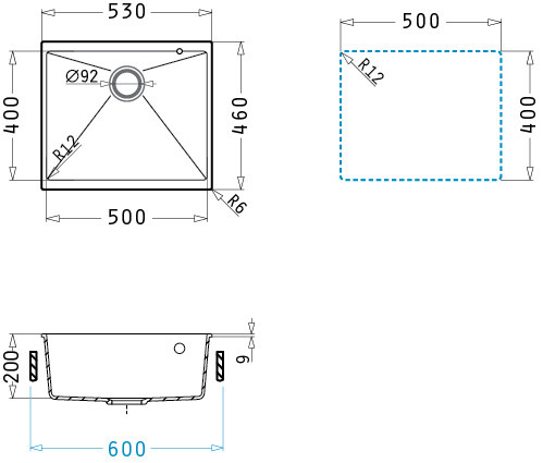 Размери на коритото: 500 x 400 x 200 mm