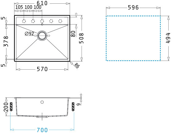 Мивка от гранит Ithaka (61×51) 1B Метално сиво