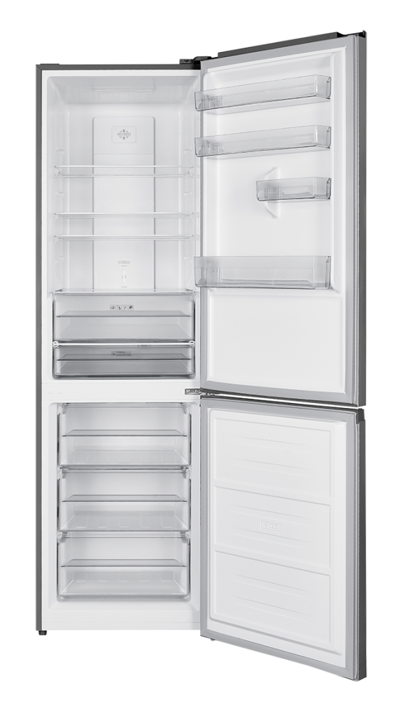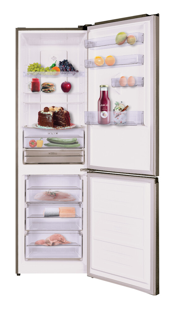 Хладилна част: 3 прозрачни стъклени рафта, 1 прозрачно чекмедже, 1 чекмедже Fresh Zone с регулиране (crisper/chiller), 4 прозрачни рафта на вратата