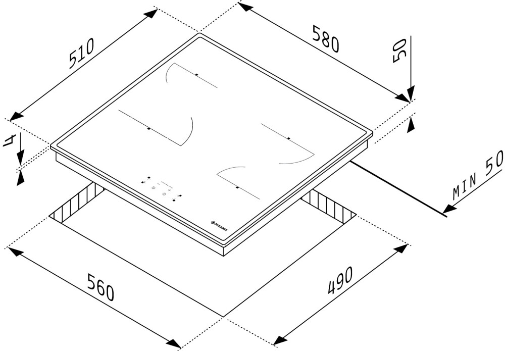 • Размери (Ш × Д × В): 580 × 510 × 50 mm