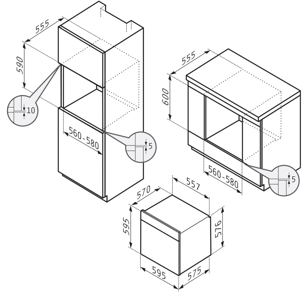 Размери (Ш × В × Д): 595 × 595 × 570 mm