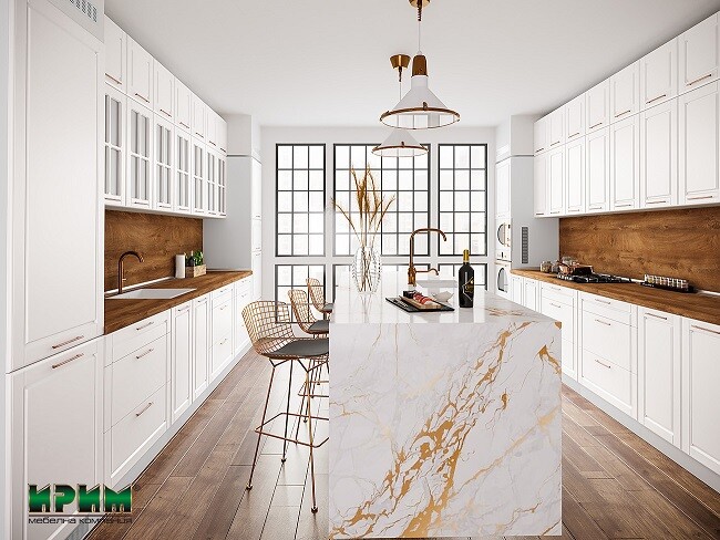 Кухня БФ-Бяло мат-09 впечатлява с модерен и изчистен дизайн в елегантна комбинация от бяло матово МДФ лице и термоплот „Дъб коняк“ . Практическите модули осигуряват функционално разпределение и възможност за вграждане на устройства и мивка , а системата за плавно затваряне гарантира комфорт при ежедневна употреба. Изработена от висококачествени материали , тази кухня съчетава стил, удобство и дълготрайност , превръщайки всяко помещение в съвременния кулинарен център.