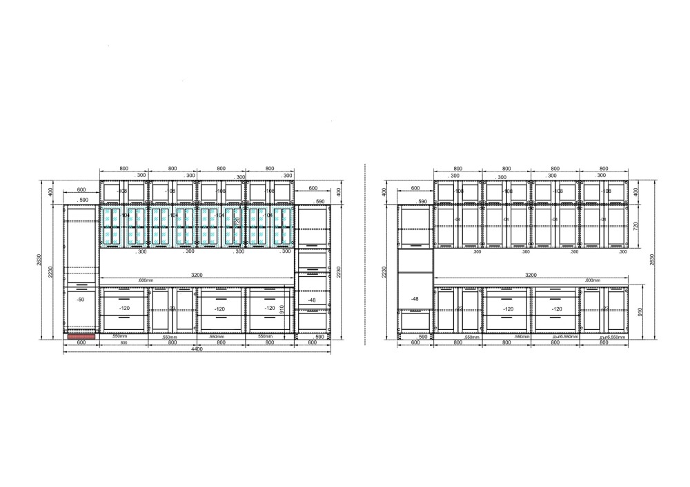 • Три долни модула с по три чекмеджета и плавно зтваряне БФ-Бяло мат-09-120 - 80/55/87 см