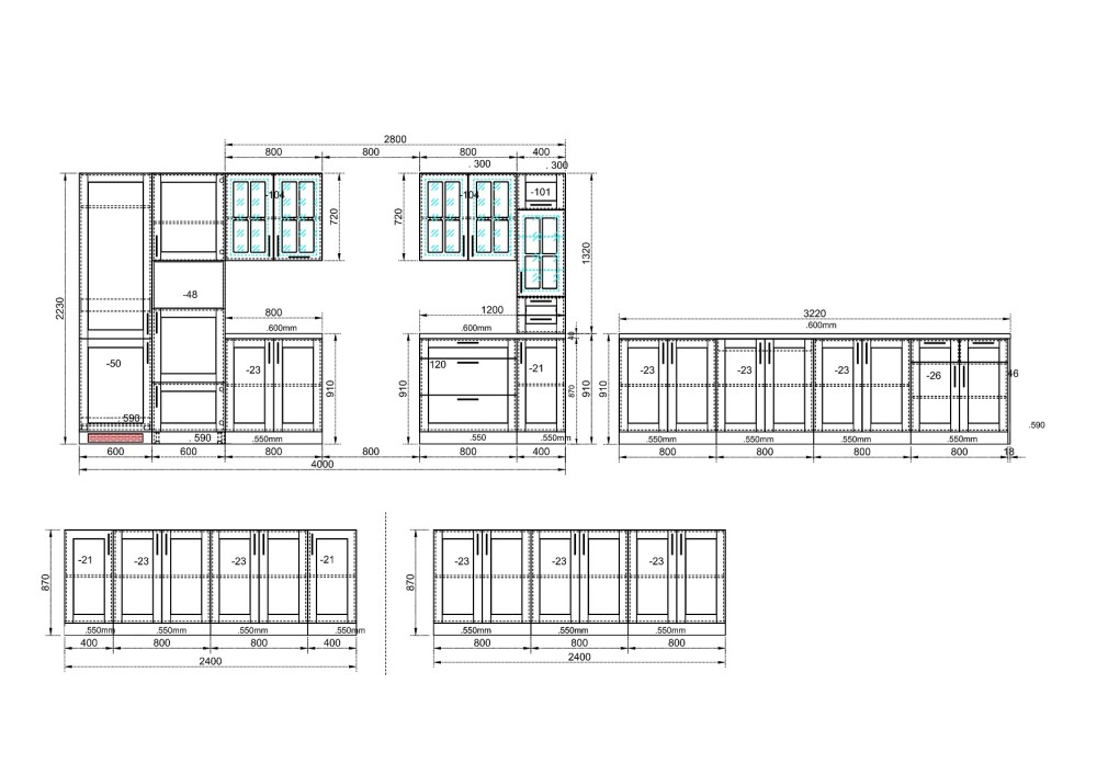 - Четири долни модула с две врати плот, възможност за вграждане на мивка БФ-Бяло мат-09-23 - 80/55/87 см