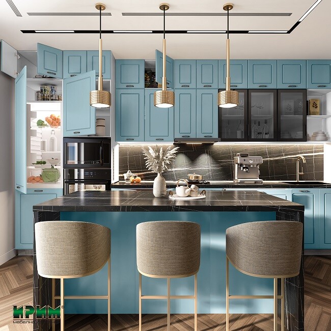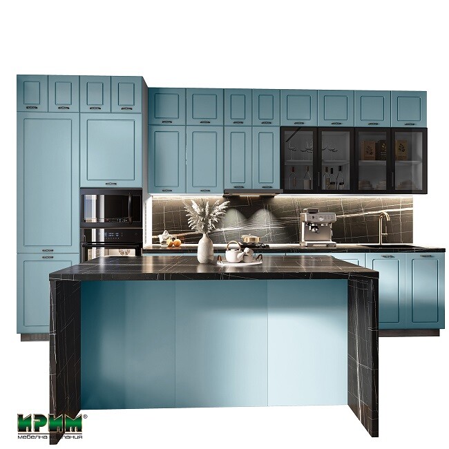 Кухня Сити 9163 впечатлява с модерен и изискан дизайн в стилна комбинация от матов деним и мраморен плот „Палазо“. Ергономично подредените модули осигуряват функционално пространство с възможност за вграждане на уреди и мивка, а системата InnoTech Atira с плавно затваряне гарантира комфорт при ежедневна употреба. Изработена от висококачествен МДФ и ПДЧ корпус, кухнята съчетава елегантност, надеждност и дълготрайност. Перфектен избор за всеки дом, в който стилът и практичността вървят ръка за ръка.