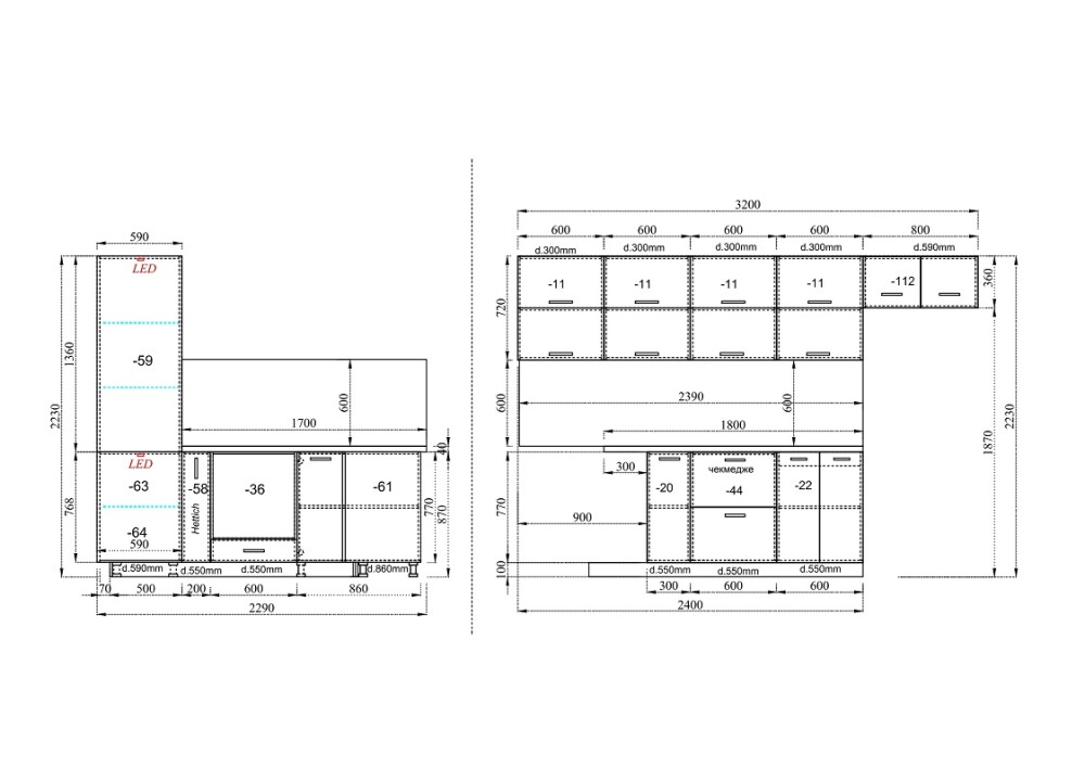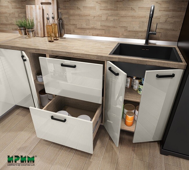 - Два долни модула с две врати и плот, възможност за вграждане на мивка МФ-Крийм гланц-11 -22 - 60/55/87см.