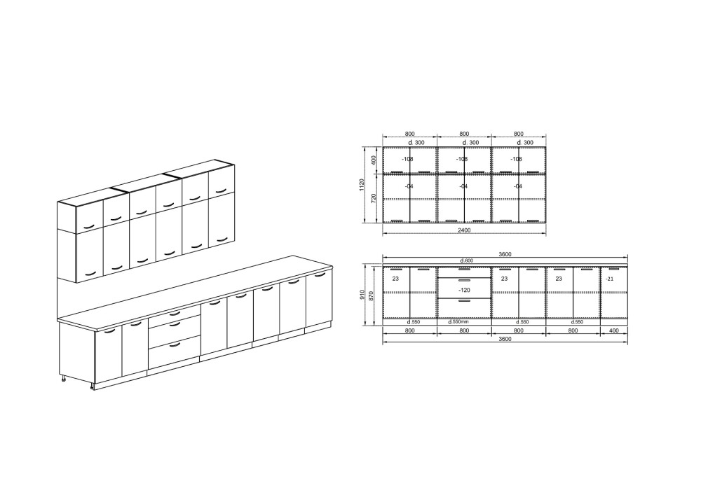 (дълбочина на шкафовете под плота – 55 см)