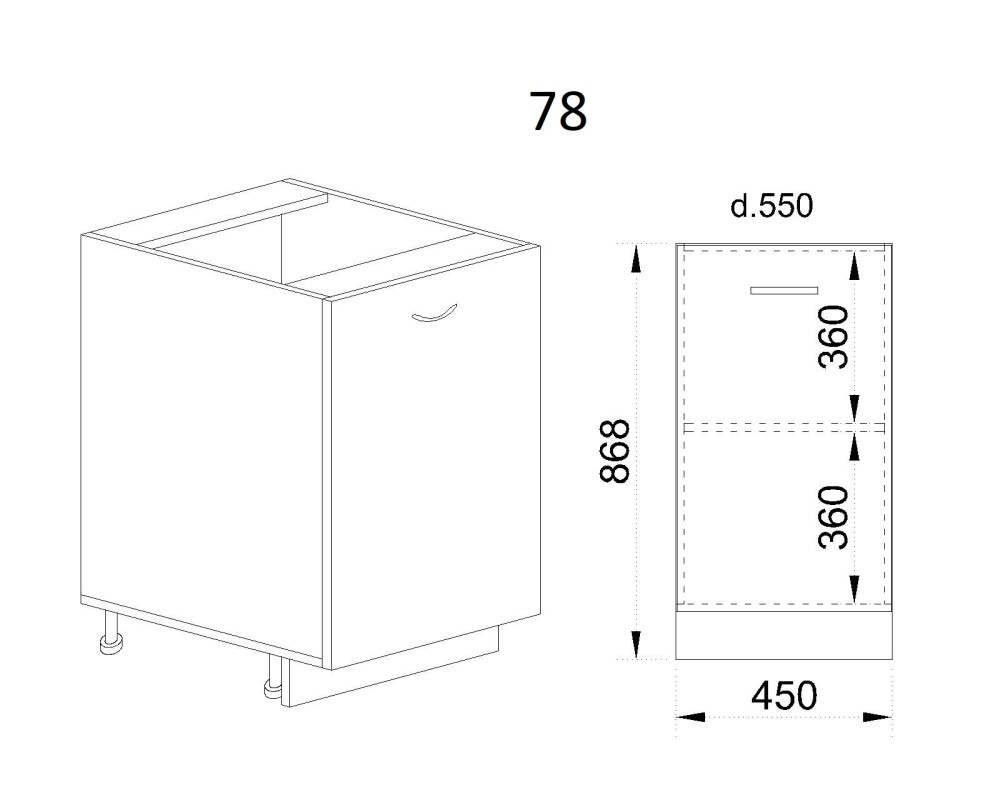 Долен модул с врата и рафт АРФ-Бяло фладер-04-78 (ляв)