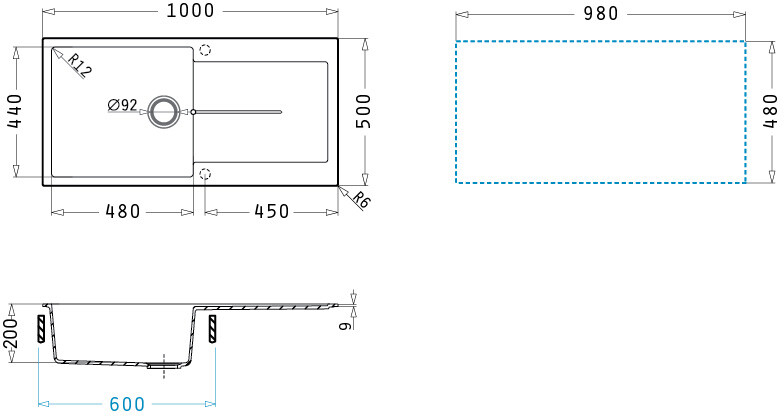 Общи размери (дължина × широчина): 1000 × 500 mm
