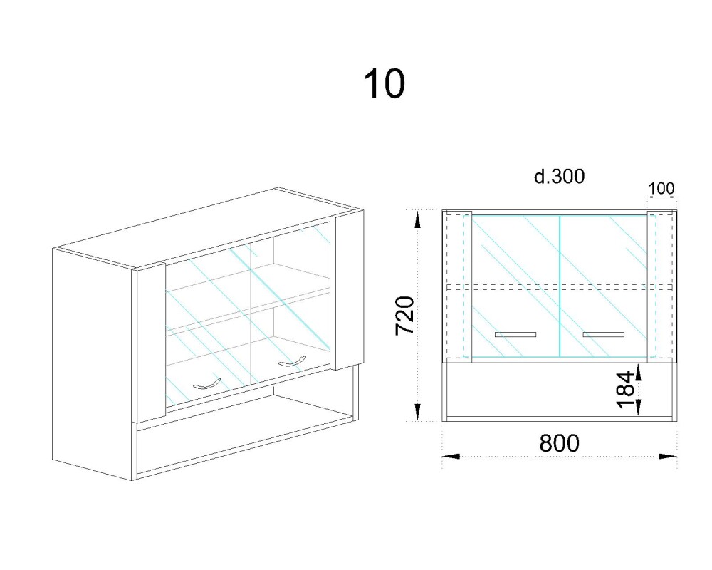 Горен модул с витринни врати и рафт АРС-Сатен-10