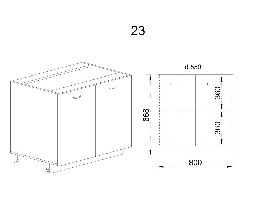 Долен модул за вграждане на мивка с две врати и рафт БО-Орех…