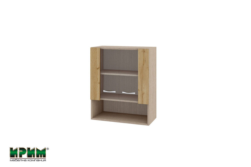 Горен модул с витринни врати и рафт МДД-Дъб дакота-9