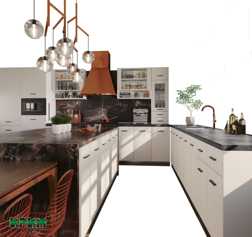 Модулната кухня Сити 9084 впечатлява с модерен дизайн, функционално разпределение и стилна цветова комбинация, подходящи за съвременни домове. Изработена от висококачествено ПДЧ 16 мм с лице в цвят Сатен и корпус бяло гладко, тя осигурява здравина, устойчивост и лесна поддръжка при ежедневна употреба. Кухнята разполага с разнообразни модули с плавно затваряне и възможност за вграждане на хладилник, фурна, микровълнова и мивка, което позволява оптимално организиране на пространството. Горните шкафове с витрини допринасят за модерна визия и допълнително удобство, а термоплотът в декор Камък антрацит придава завършен и стилен вид. Модулната кухня БС – Сатен е практично решение за създаване на просторна, функционална и елегантна кухненска среда.