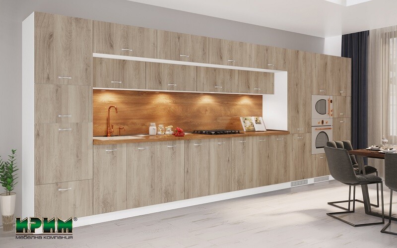 Модулната кухня Сити 9113 съчетава естествена дървесна визия, модерен дизайн и практично разпределение, подходящи за просторни и функционални кухни. Изработена от висококачествено ПДЧ 16 мм с лице в цвят Сонома Арвен 629 и корпус бяло гладко, тя осигурява здравина, устойчивост и лесна поддръжка при ежедневна употреба. Кухнята разполага с удобни модули с плавно затваряне и възможност за вграждане на хладилник, фурна, микровълнова и мивка, което позволява ефективна организация на кухненското пространство. Термоплотът в декор Дъб класик допълва естественото излъчване и придава завършен стилен вид. Модулната кухня БДА – Сонома Арвен 629 е отлично решение за създаване на удобна, модерна и уютна кухненска среда.