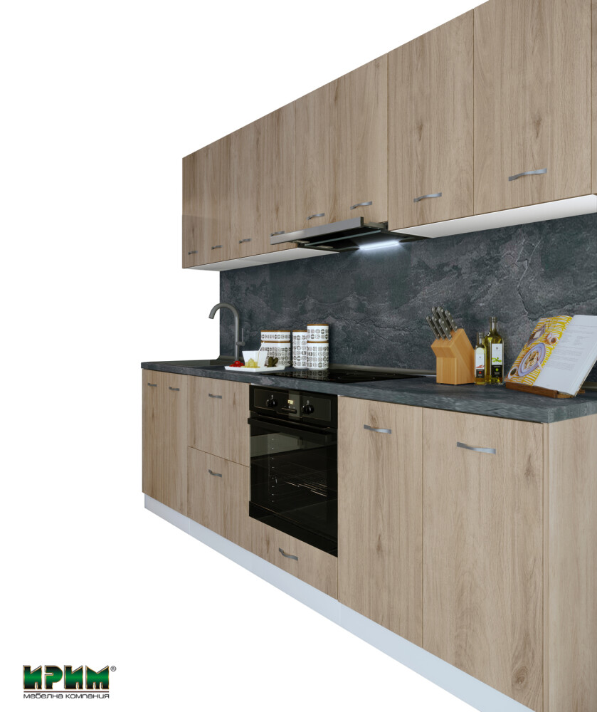 Модулната кухня Сити 9116 предлага модерна визия, функционално разпределение и удобство в ежедневната употреба. Изработена от висококачествено ПДЧ 16 мм с лице в цвят Сонома Арвен 629 и корпус бяло гладко, тя осигурява здравина, устойчивост и лесна поддръжка. Комплектът включва практични долни и горни модули с плавно затваряне, възможност за вграждане на мивка, фурна и аспиратор, както и удобно пространство за съхранение. Термоплотът в декор Галакси допълва съвременната визия и придава стилен завършен вид. Отличен избор за създаване на компактна, функционална и модерна кухня.