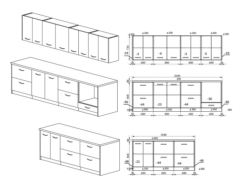 Дълбочина на шкафове под плот 55см.