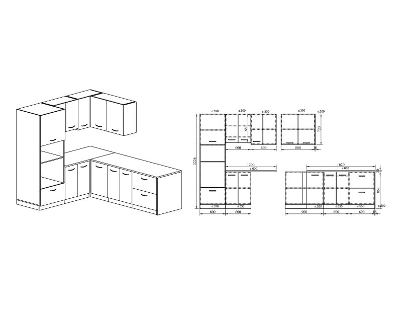 Дълбочина на шкафове под плот 55см.