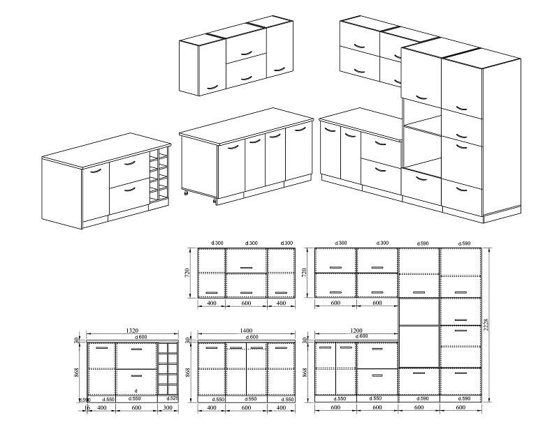 Дълбочина на шкафове под плот 55см.
